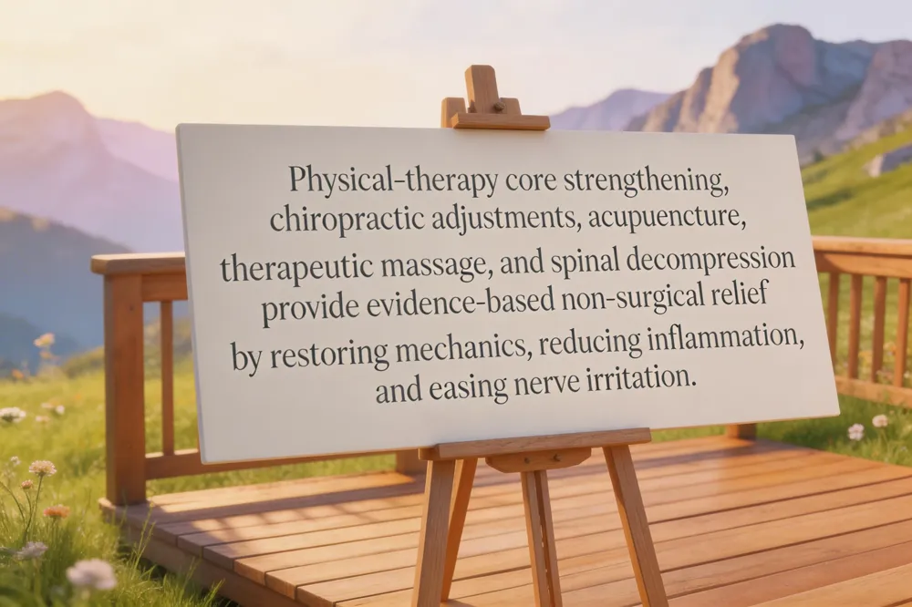 Conservative care for sciatica centers on restoring normal mechanics, easing inflammation, and promoting nerve glide without surgery. A typical physical‑therapy program blends core‑strengthening (targeting the transverse abdominis and multifidus), posture correction, and range‑of‑motion drills. Targeted stretches—piriformis, hamstrings, and lower‑back muscles—are held for at least 30 seconds to lower nerve tension and prevent recurrence.
