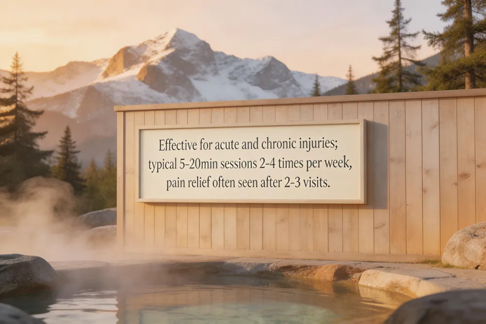 A standard protocol uses 5‑20‑minute sessions, 2‑4 times per week. Most athletes notice pain relief and increased range of motion after 2‑3 visits; a full course of 6‑8 weekly sessions (≈1 month) is common, with chronic cases sometimes requiring 8‑30 sessions.