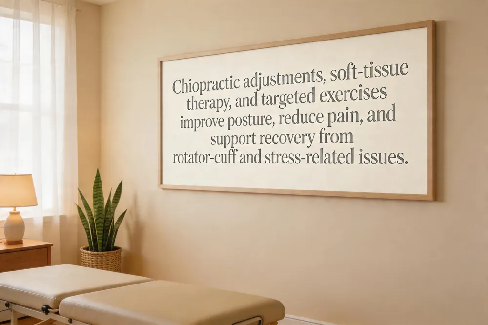 Chiropractors can significantly improve posture by identifying spinal and muscular imbalances and applying precise adjustments, soft‑tissue therapy, and targeted exercise programs. Studies show reduced pain and measurable postural gains, though lasting results require ergonomic habits and strengthening. Rotator‑cuff problems benefit from chiropractic care that aligns the shoulder girdle, reduces joint strain, and incorporates rehab exercises, often avoiding surgery. While evidence for ALS is limited, chiropractic may palliate musculoskeletal discomfort associated with the disease, similar to benefits seen in other neuro‑degenerative conditions. Stress‑related cortisol elevation can be moderated by chiropractic’s influence on nervous‑system balance, helping the body return to normal stress responses. For gym‑based posture work, prioritize upper‑back and core strengthening: dumbbell rows, cable face pulls, reverse flies, farmer’s walks, and dynamic chest‑opening stretches to promote a tall, neutral spine.