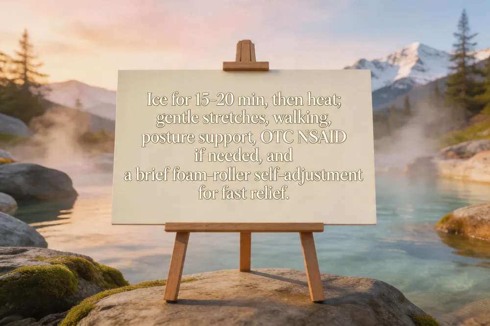 How to relieve back pain fast at home: Ice first, then heat; gentle stretches, walking, posture support, OTC NSAID if needed, and consider a foam‑roller self‑adjustment.
