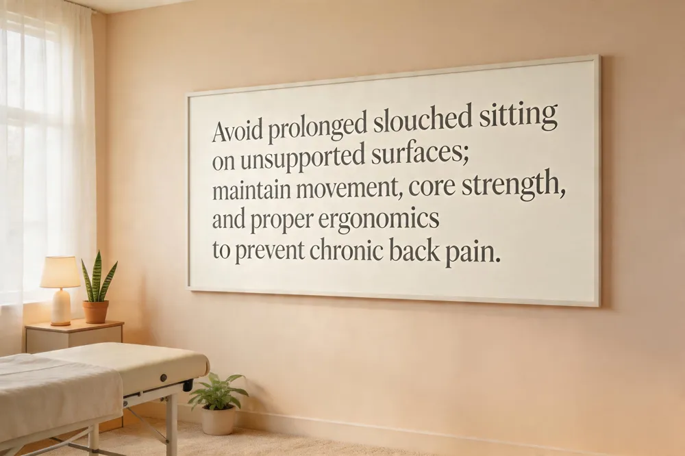 Prolonged slouched sitting is the single most damaging habit for back pain. When the spine is hunched on an unsupportive couch, chair, or mattress, natural curves are lost, intervertebral disc pressure rises, and muscle tension builds. Adding to this, unsupported mattresses and shoes that lack proper arch support force the pelvis and lower back into maladaptive positions, increasing load on lumbar structures. A lack of regular movement and core weakness compounds the problem; without frequent micro‑breaks and strengthening exercises, the muscles that stabilize the spine become fatigued and ineffective.