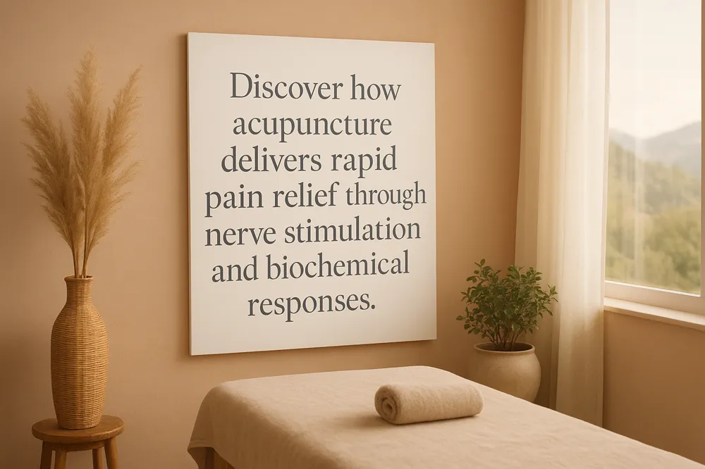 Acupuncture achieves rapid pain relief through stimulation of specific acupoints, triggering a network of physiological responses. Needle insertion activates peripheral nerves, enhancing local blood flow and promoting the release of endogenous opioids such as endorphins. These natural painkillers bind to receptors in the nervous system to diminish pain signals. Additionally, acupuncture modulates neurotransmitters like serotonin and adenosine, further reducing pain perception. It also exerts anti-inflammatory effects by regulating cytokine profiles, which helps alleviate swelling and tissue irritation in acute injuries (Acupuncture for pain relief, Acupuncture for rapid pain relief, acupuncture for pain relief).