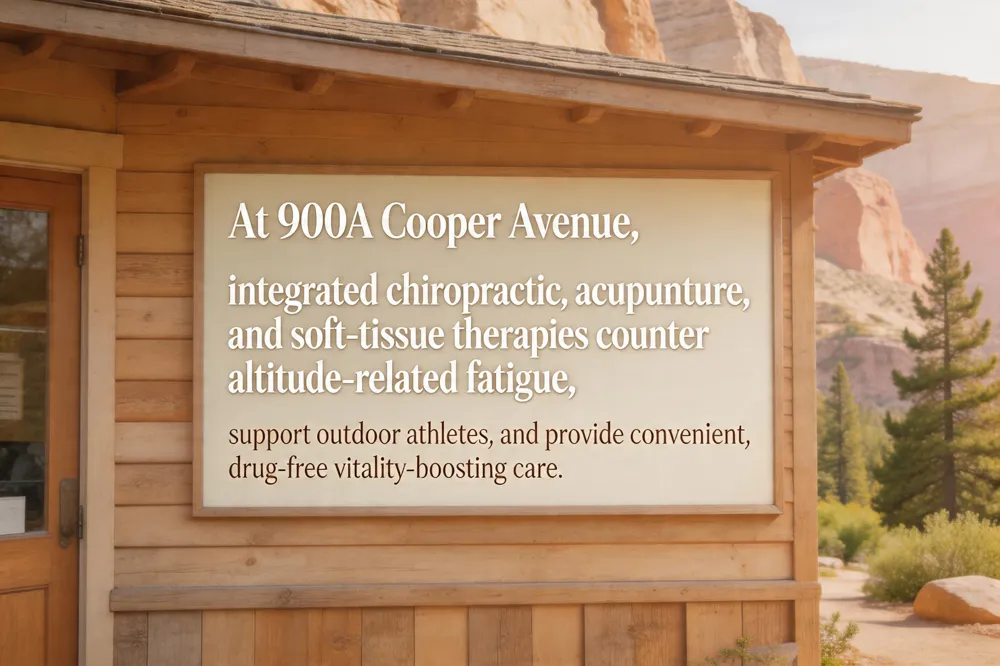 Glenwood Springs sits at roughly 5,800 feet elevation, where thinner air can contribute to altitude‑related fatigue. A well‑aligned spine optimizes nervous‑system signaling and blood flow, helping the body deliver oxygen and nutrients more efficiently to tissues and thereby mitigating the energy‑draining effects of high altitude. Residents and visitors who enjoy the area’s outdoor recreation—hiking the Glenwood Canyon, mountain biking the surrounding trails, or skiing at Sunlight Mountain Resort—frequently experience musculoskeletal strain from uneven terrain and repetitive motions. The local chiropractic clinic at 900A Cooper Avenue offers a non‑invasive, drug‑free approach that restores spinal alignment, reduces muscle tension, and improves posture, allowing athletes and casual adventurers to recover faster and conserve energy for daily activities.