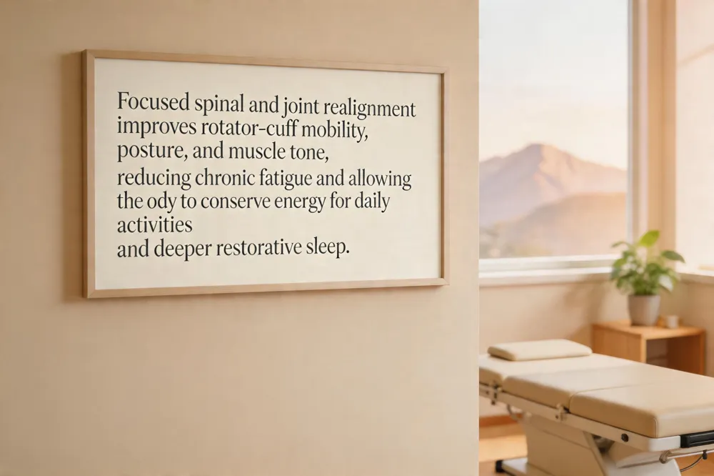 Chiropractic adjustments in Glenwood Springs focus on restoring joint mobility and reducing muscular tension, which directly supports rotator‑cuff health. By gently realigning the shoulder girdle, adjustments improve blood flow and create a biomechanically favorable environment for tissue healing, complementing physical‑therapy protocols. Proper posture is another cornerstone of energy conservation; spinal realignment lowers the effort required to maintain upright alignment, decreasing chronic muscle fatigue and freeing metabolic resources for daily activities. Additionally, relieving muscle tension in the neck, back, and shoulders promotes deeper, more restorative sleep, allowing the body to replenish cellular energy overnight.