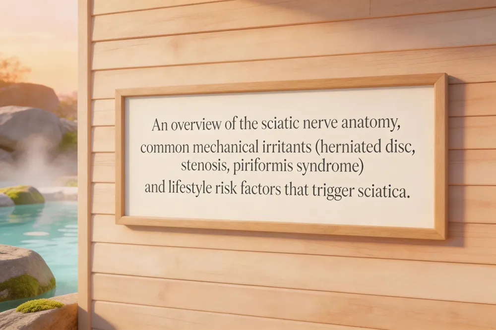 The sciatic nerve, the longest nerve in the body, originates from the lumbar and sacral spinal roots, traverses the pelvis and buttocks, and runs down the back of each leg before dividing at the knee. Most sciatica cases arise from mechanical irritation of this nerve pathway. Common triggers include a herniated or bulging lumbar disc that presses on a nerve root, spinal stenosis that narrows the spinal canal, and piriformis syndrome where the piriformis muscle compresses the nerve. Risk factors that increase susceptibility are aging‑ degenerative disc disease, excess body weight, weak core musculature, and poor posture. Everyday activities—prolonged sitting, standing, heavy lifting, twisting, coughing or sneezing—can exacerbate nerve irritation by increasing disc pressure or muscle tension. Recognizing these anatomical and lifestyle contributors is essential for a patient‑centered, conservative treatment plan that often combines chiropractic adjustments, targeted stretching, core‑strengthening exercises, and ergonomic education to relieve pain and prevent recurrence.