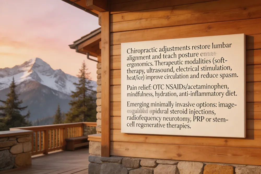 Chiropractic adjustments, therapeutic modalities, and emerging minimally invasive options form a patient‑centered, evidence‑based approach to back pain.