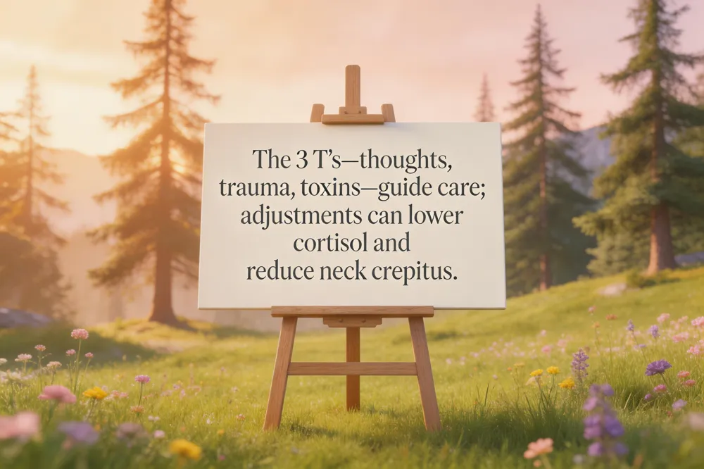 In chiropractic philosophy, the “3 T’s” stand for thoughts, trauma, and toxins. Trauma includes major injuries and repetitive micro‑traumas like prolonged sitting. Toxins cover inflammatory foods, environmental pollutants, and mold. Thoughts refer to chronic mental stress that keeps the nervous system in a sympathetic state, disrupting hormonal balance. Addressing these three factors through nutrition, movement, and stress‑reduction restores nervous system function and overall health.
