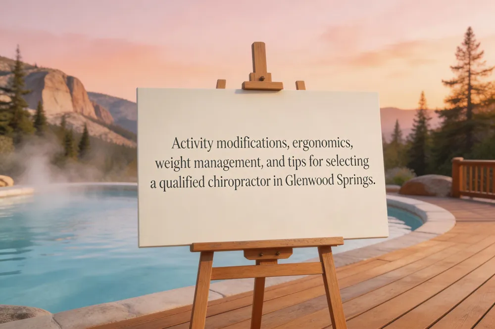 Activity modifications for degenerative disc disease focus on protecting the spine while staying active. Avoid heavy lifting, repetitive bending or twisting, high‑impact sports (running, basketball, contact athletics), and prolonged static positions such as long sitting or standing. Instead, choose low‑impact aerobic work—walking, swimming, cycling—and core‑strengthening routines that support the spine without overloading the discs. Weight management and ergonomics are equally vital: maintain a healthy body weight to reduce axial load, use ergonomic chairs and supportive mattresses, and practice neutral‑spine posture when sitting, lifting, or driving. Regular micro‑breaks for stretching improve disc nutrition and lessen pain spikes. Finding qualified chiropractor in Glenwood Springs, CO search for providers who list degenerative disc disease or spinal decompression among their services. Glenwood Chiropractic, a locally owned clinic, offers gentle adjustments, motorized decompression and personalized home‑exercise plans. Verify licensure, read patient reviews, and schedule a new‑patient consultation to discuss a multimodal, non‑surgical treatment strategy.