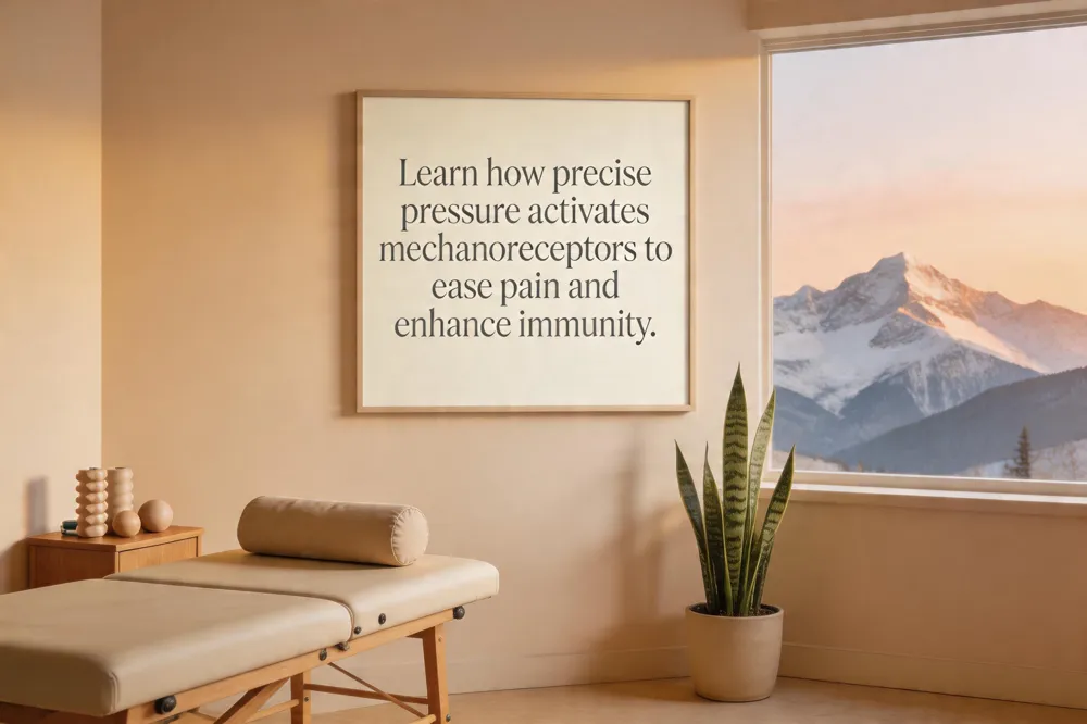 Manual pressure stimulates cutaneous and deep mechanoreceptors, triggering the gate‑control mechanism that dampens nociceptive signaling. Light, rhythmic strokes also promote parasympathetic tone, lowering cortisol and muscle tension, which together decrease joint stiffness and chronic pain.