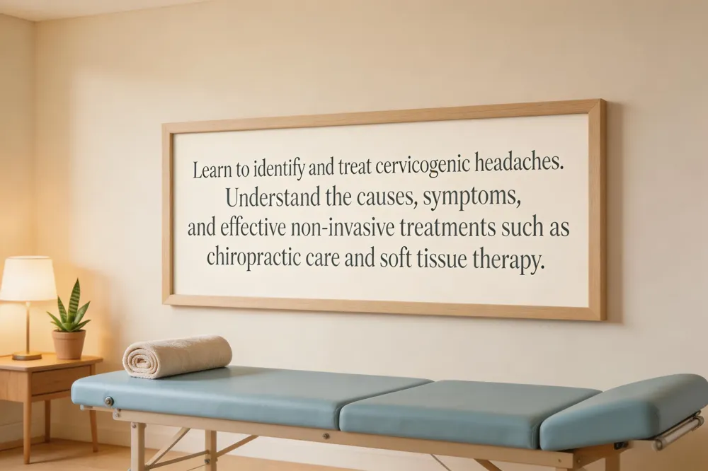 A cervicogenic headache is a type of headache originating from the neck due to issues such as irritated joints, discs, or muscles. Symptoms include one-sided pain beginning at the base of the skull, often worsening with neck movements or poor posture. These headaches differ from migraines or tension headaches in that they stem from structural issues in the cervical spine. Common signs include limited neck mobility and pain radiating to the temples or jaw. Effective treatment includes chiropractic care, involving spinal adjustments to realign the cervical spine, soft tissue therapy to alleviate muscle tension, and postural correction exercises. Clinical evidence indicates that chiropractic spinal manipulation, specifically, can significantly reduce the intensity and frequency of these headaches, offering non-invasive and drug-free alternatives for long-term pain management.