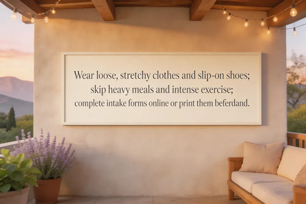 Do not eat a large, heavy meal right before your appointment—comfortably stomach can make lying on the table unpleasant. Skip intense or strenuous exercise in the few hours preceding the visit, as elevated muscle tension can reduce the effectiveness of the adjustment. Limit caffeine and alcohol, which can dehydrate you and affect blood pressure. Also avoid wearing restrictive clothing that hinders range‑of‑motion testing, and be sure to write down any symptoms or concerns so you don’t forget important details during the consultation.