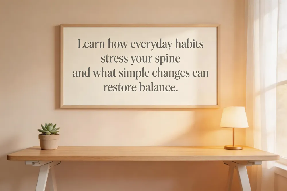 Slouching, forward‑head posture, and rounded shoulders place uneven mechanical stress on spinal discs, joints, and ligaments, accelerating wear and compressing intervertebral discs.
