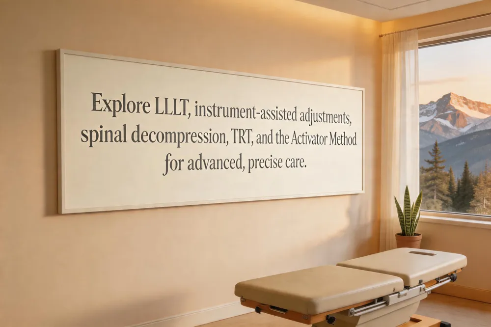 Modern chiropractic care blends time‑tested adjustments with cutting‑edge technologies to enhance pain relief and functional recovery. Low‑Level Laser Therapy (LLLT) uses focused light to reduce inflammation and accelerate tissue healing without medication, while instrument‑assisted adjustments employ handheld devices that deliver precise, controlled thrusts for patients hesitant about manual manipulation. Spinal decompression gently stretches the spine to relieve disc pressure, offering a non‑surgical option for herniated or bulging discs. The Torque Release Technique (TRT) utilizes an FDA‑approved Integrator tool to provide ultra‑quick, targeted adjustments that balance nervous‑system tone. The Activator Method, a spring‑loaded handheld instrument, delivers low‑force, accurate adjustments, making it ideal for all ages and sensitive joints.