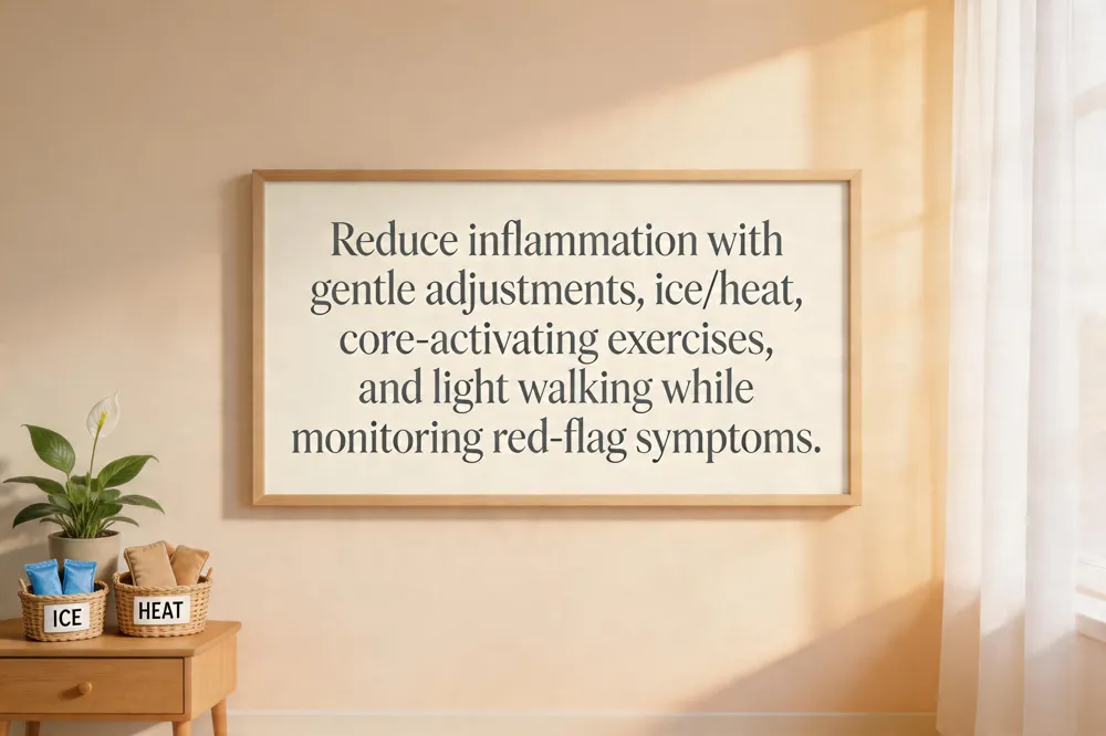 Initial chiropractic and self‑care strategies focus on reducing inflammation and protecting the nerve. Gentle spinal adjustments and soft‑tissue work can create space for the disc, lessen muscle spasms, and promote early centralisation. Ice (15‑minute sessions) 1‑2 3 inflammation swelling, followed by heat after 48‑72 hours to improve circulation. Light walking and core‑activating exercises (e.g., pelvic tilts) maintain mobility without over‑loading the nerve.