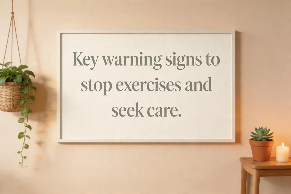 Red‑flag symptoms indicating the need for urgent medical evaluation include severe, unrelenting pain, sudden numbness or weakness in the leg, loss of bladder or bowel control, fever, chills, night sweats, or any sign of cauda equina syndrome. When these signs appear, stop all home exercises and seek professional care immediately.