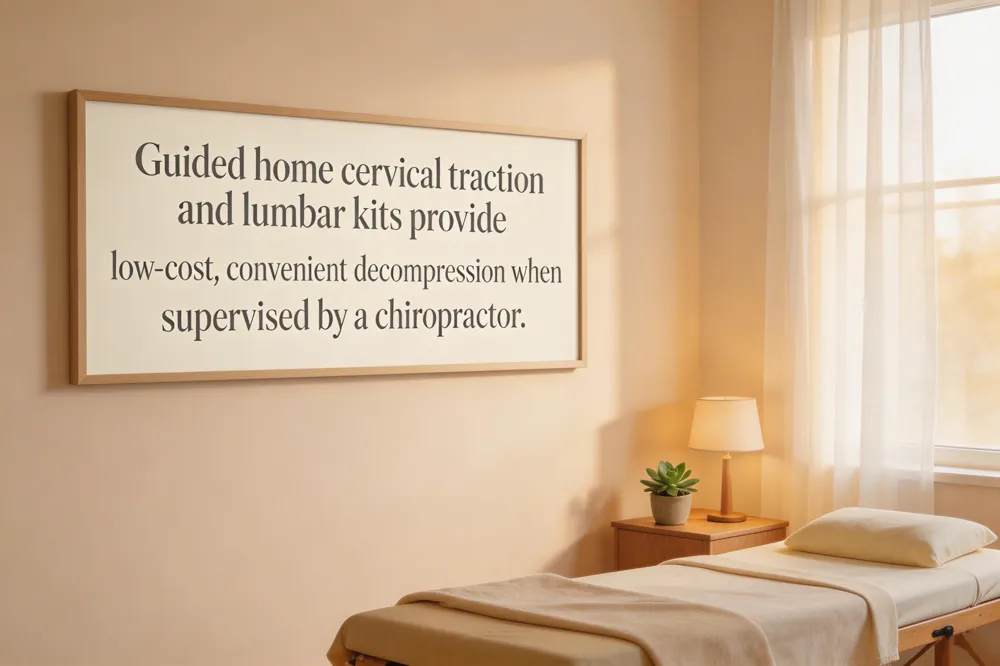 Home traction offers a low‑cost, convenient way to decompress the spine when guided by a qualified chiropractor.