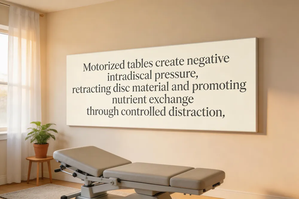 Motorized traction tables – Modern spinal decompression uses a motor‑controlled table that gently stretches the spine. The patient lies fully clothed in a harness around the pelvis and trunk while the computer‑driven unit applies incremental pulling forces, creating a controlled distraction of the vertebrae.