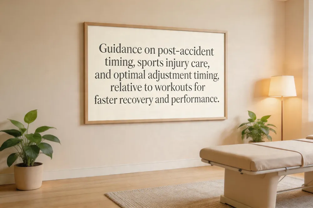 Is it better to get a chiropractic adjustment before or after a workout? Most clinicians recommend post‑workout adjustments because warmed‑up muscles and joints allow precise assessment and correction of imbalances, reducing soreness and promoting faster recovery. A pre‑workout adjustment may be warranted only for severe restrictions that could impede safe training; it should be brief and followed by a proper warm‑up. Discuss your goals and pain points with your chiropractor to tailor timing and technique for optimal performance and health.