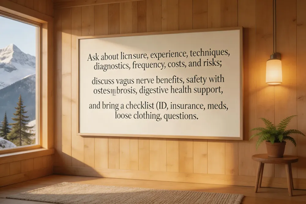 When you schedule a first chiropractic visit in Glenwood Springs, a few simple steps can make the experience smoother and more effective. Wear loose, breathable clothing—yoga pants or leggings with a soft tee—so the clinician can easily assess posture and perform adjustments. Finish a light, protein‑rich snack at least an hour before the appointment and stay well‑hydrated; avoid heavy meals, excessive caffeine, alcohol, or smoking, which can dehydrate you and heighten sensitivity. Skip intense workouts or heavy lifting for several hours beforehand, but a gentle walk or light yoga can warm up muscles. Arrive 10–15 minutes early to complete paperwork and settle in; punctuality helps preserve the full 45‑minute assessment window. Bring a list of medications, past injuries, and specific pain points, and prepare any questions you have about the treatment plan.